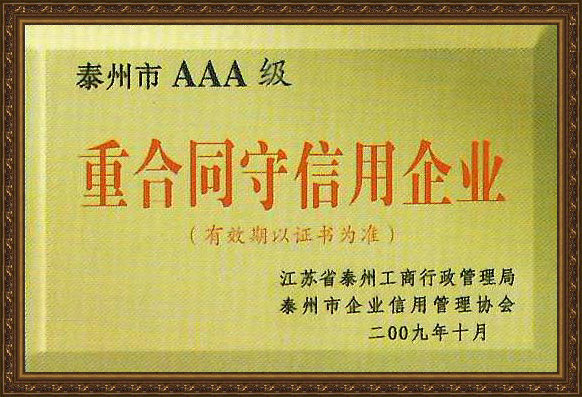 泰州市AAA級重合同守信用企業(yè) [查看詳情]